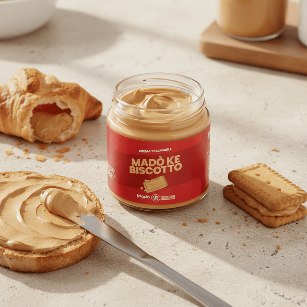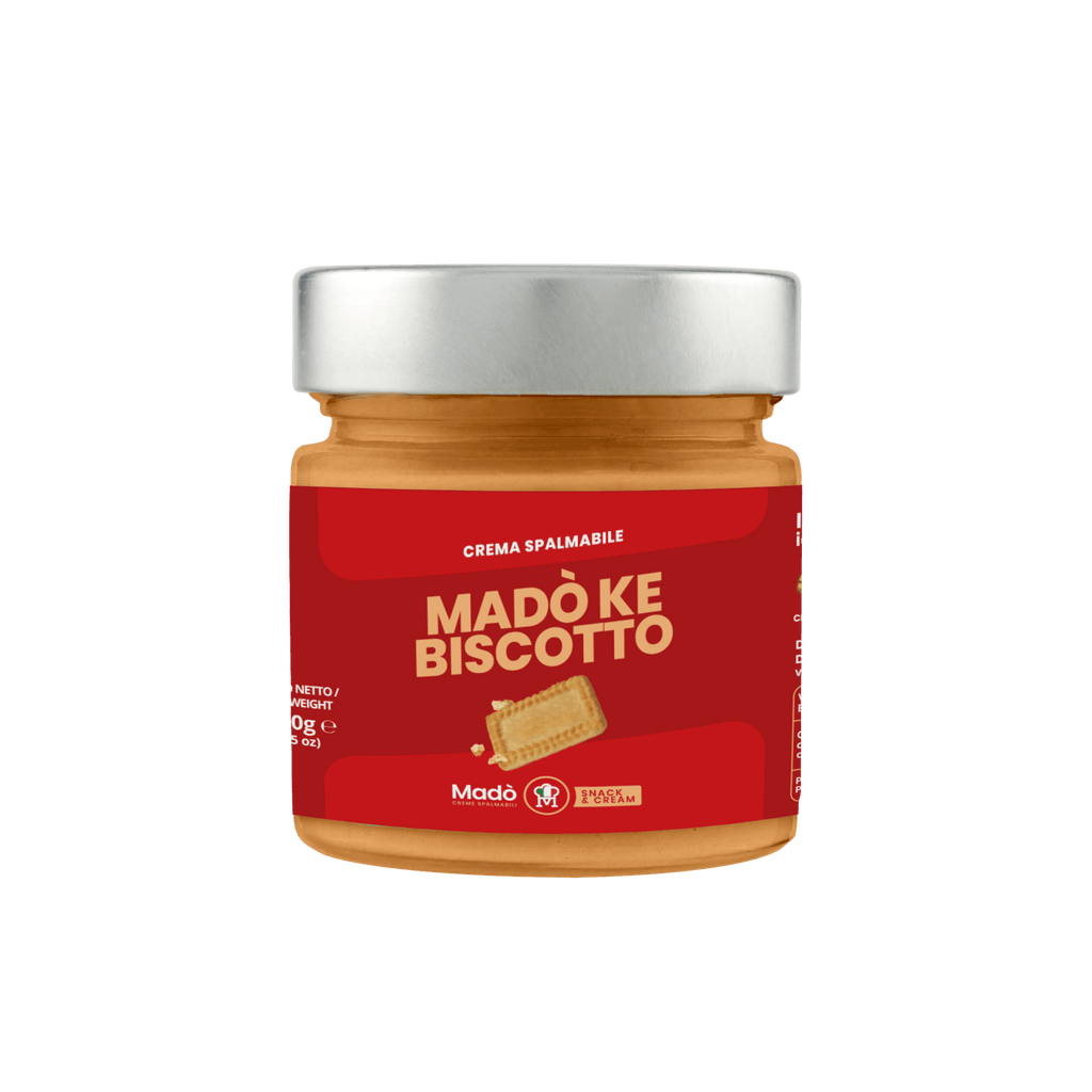 Description: A delicious jar of cream with the flavor "Madò Ke Biscotto", perfect for enhancing any snack or dessert. Ready to use and easy to spread, a MUST for lovers of genuine flavors, with a unique and irresistible artisanal taste! The product contains pieces of biscuit that provide an unmistakable texture and flavor.