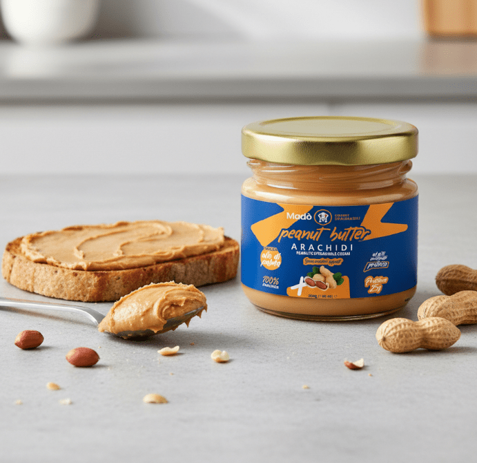 Descrizione: Un delizioso vasetto di crema proteica al BURRO D’ARACHIDI, perfetto per arricchire ogni spuntino o fine pasto. Pronta all'uso e facile da spalmare, è un MUST per gli amanti dei gusti intensi, con un sapore artigianale unico e irresistibile!