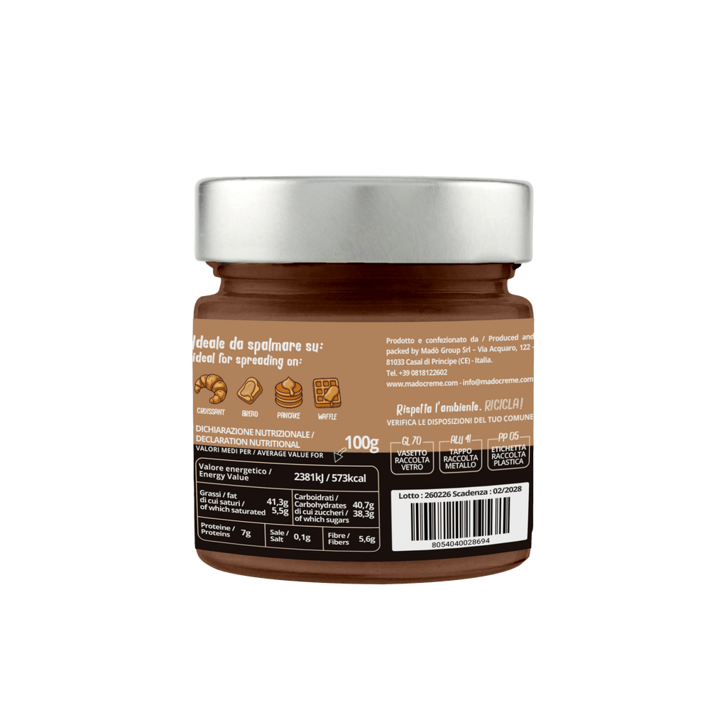 Description: A delicious jar of HAZELNUT cream, perfect for enhancing any snack or dessert. Ready to use and easy to spread, it is a MUST for hazelnut lovers, with a unique and irresistible artisanal flavor.