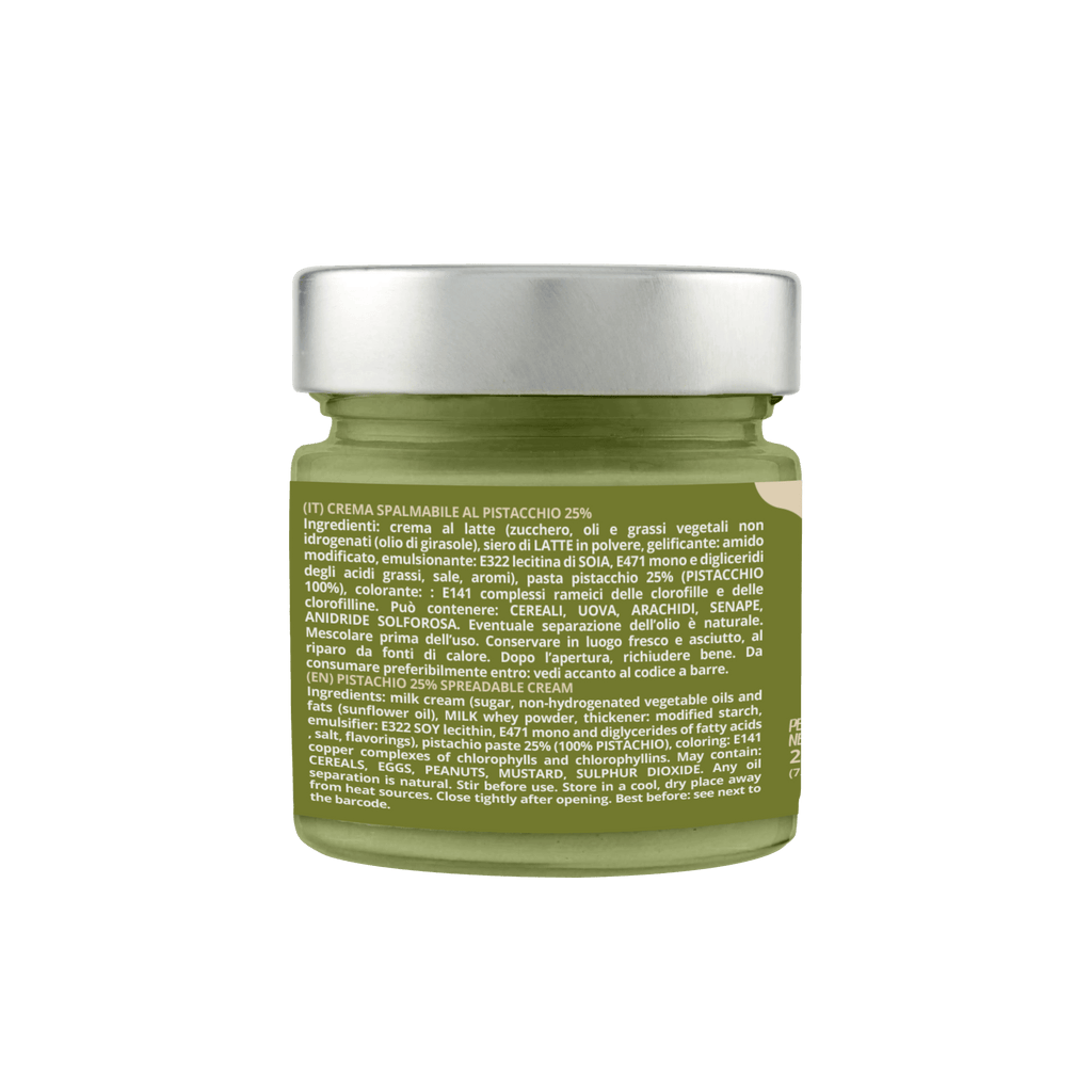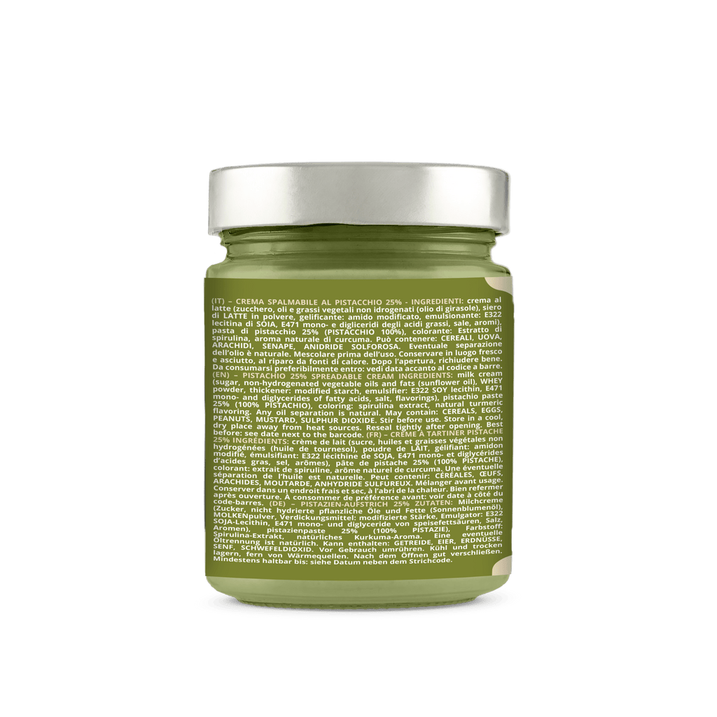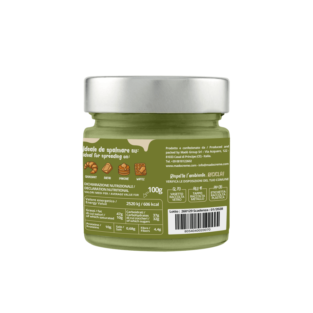 Description: A delicious jar of PISTACHIO cream, perfect for enhancing any snack or dessert. Ready to use and easy to spread, it is a MUST for pistachio lovers, with a unique and irresistible artisanal flavor!
