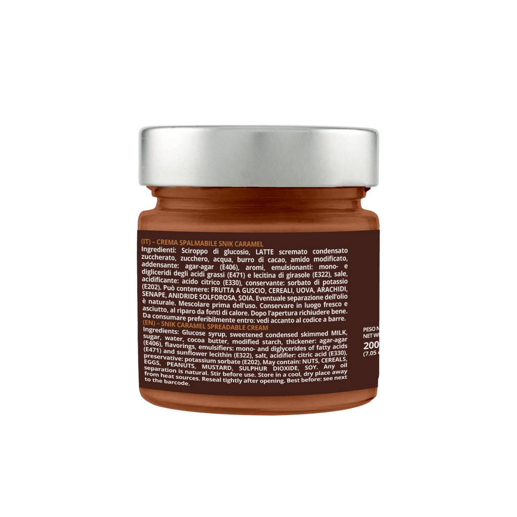 Descrizione: Un delizioso vasetto di crema al gusto CARAMELLO DOLCE, perfetto per arricchire ogni spuntino o fine pasto. Pronta all'uso e facile da spalmare, è un MUST per gli amanti del caramello, con un sapore artigianale unico e irresistibile!