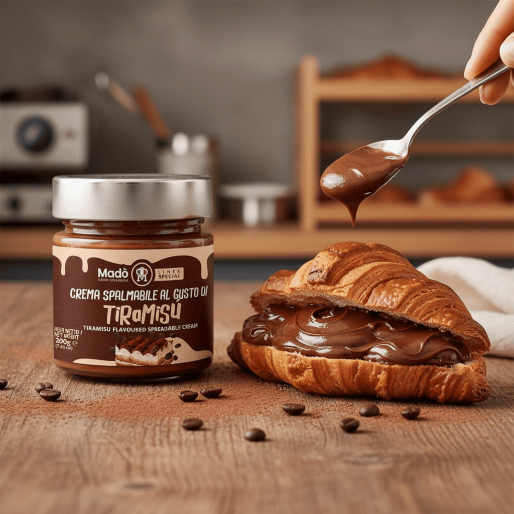Descrizione: Un delizioso vasetto di crema al gusto TIRAMISÙ, una vera delizia della linea Special! Perfetta per arricchire ogni spuntino o concludere un pasto, questa crema è pronta all'uso e facile da spalmare. È un MUST per gli amanti del Tiramisù, con un sapore artigianale unico e irresistibile!